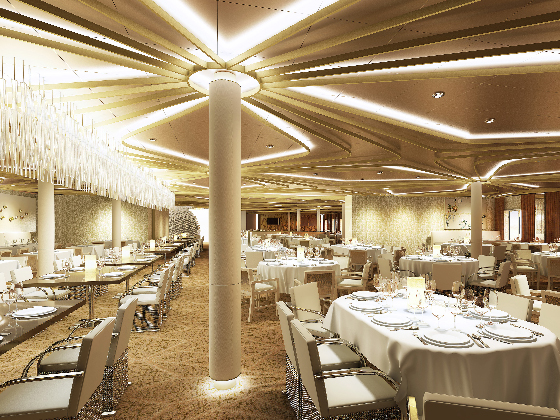 該餐廳是對昔日年華的奢華回顧,正餐曾經(jīng)是歷史悠久的宗教典禮,濃妝艷抹, 高朋滿座。在格藍(lán)迪,每一晚都是正裝之夜,每一晚都是特殊場合,從惠靈頓牛排、香橙燴雞、烘烤扇貝到杏仁鰨魚,全球經(jīng)典菜肴匯集于海洋量子號上最優(yōu)雅的餐廳。