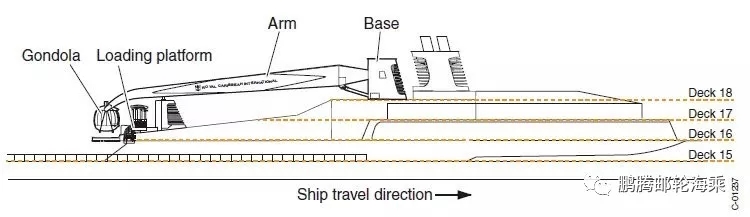 其實,它的基座是被安排在相當(dāng)于甲板18層的位置上,機械臂連接在這個基座,然后再通過位于甲板17層的裝載平臺,將吊艙(玻璃球艙)裝到機器臂上。(如下“北極星結(jié)構(gòu)圖”所示)
