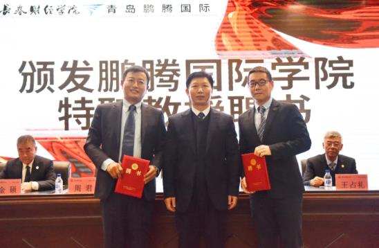 會議伊始,長春財經(jīng)學(xué)院副校長王占禮宣讀了《長春財經(jīng)學(xué)院關(guān)于成立鵬騰國際學(xué)院的決定》以及《關(guān)于聘任周君等4名同志為長春財經(jīng)學(xué)院特聘教授、特聘講師的決定》。