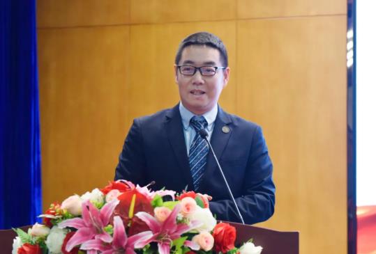 青島鵬騰國際經(jīng)濟技術(shù)合作(集團)有限公司總經(jīng)理周君致辭,他代表青島鵬騰國際對長春財經(jīng)學(xué)院鵬騰國際學(xué)院的簽約成立表示熱烈的祝賀與美好的祝愿。他表示,青島鵬騰國際與外國語學(xué)院自2018年起便有著密切的合作,為如今鵬騰國際學(xué)院的成立奠定了良好的基礎(chǔ)。今年年初疫情席卷全國,在全國范圍內(nèi)停產(chǎn)停工停學(xué)的情況下,外國語學(xué)院在王軍院長的帶領(lǐng)下,仍積極有序地推進鵬騰國際學(xué)院成立工作,令他與他的同事們深為感動。他表示,在克服了疫情帶來的重重困難下,成立的鵬騰國際學(xué)院,未來發(fā)展必定越來越好。他指出,青島鵬騰國際郵輪產(chǎn)業(yè)與國家“一帶一路”戰(zhàn)略高度吻合,此次與外國語學(xué)院的合作,是深化產(chǎn)教融合的重要舉措。愿與外國語學(xué)院一道,為培養(yǎng)具有國際化視野的應(yīng)用型人才共同努力。