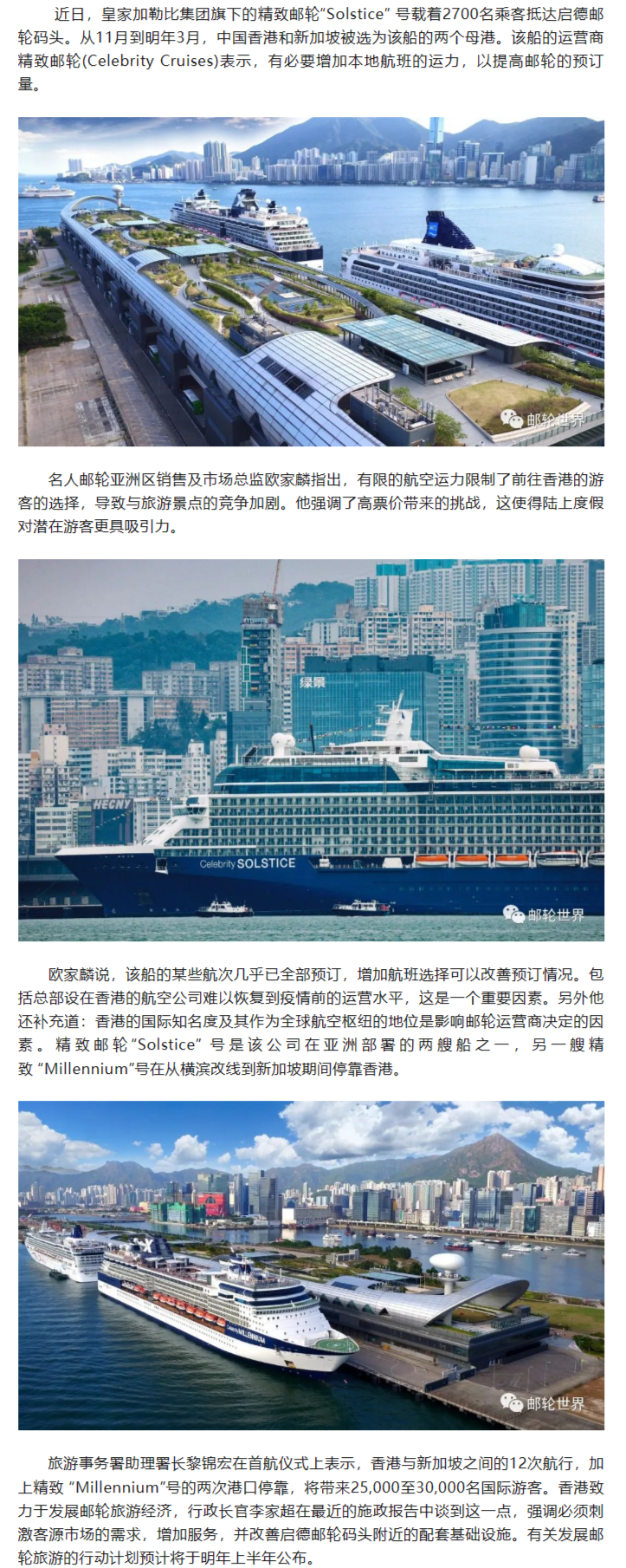 精致郵輪“Solstice” 開啟了5個月以中國香港為母港的系列航程
