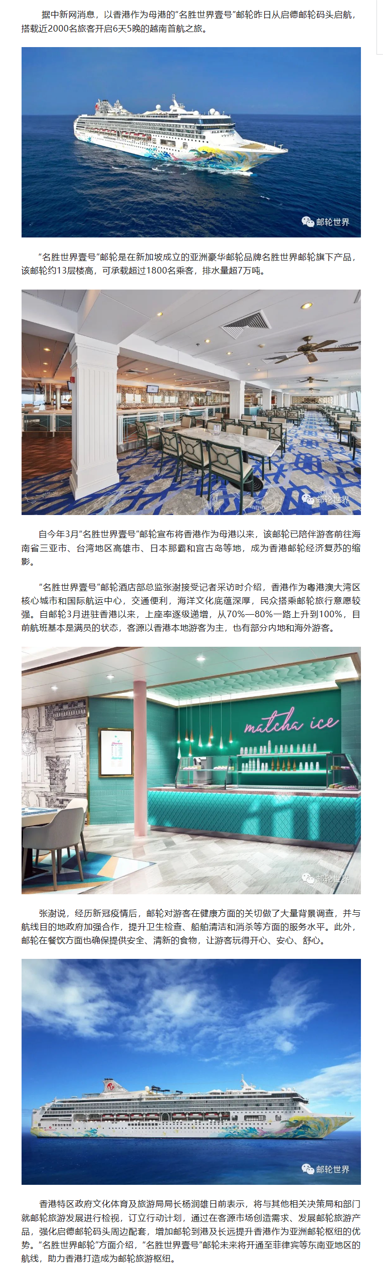 “名勝世界壹號(hào)”郵輪搭載近2000名旅客開(kāi)啟東南亞之旅