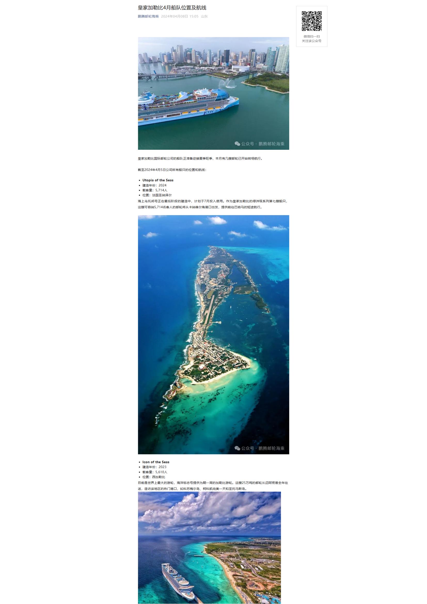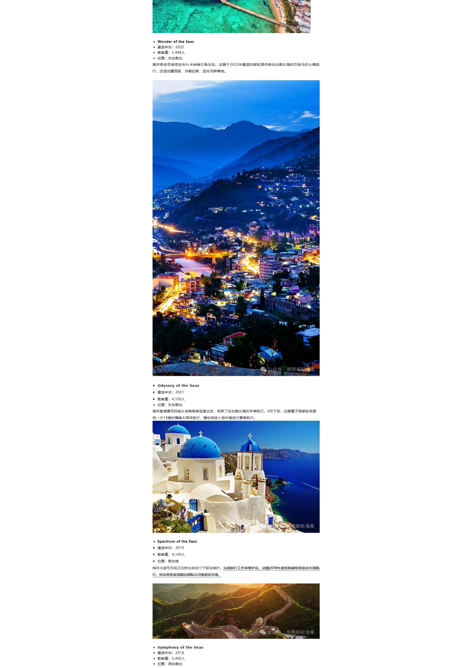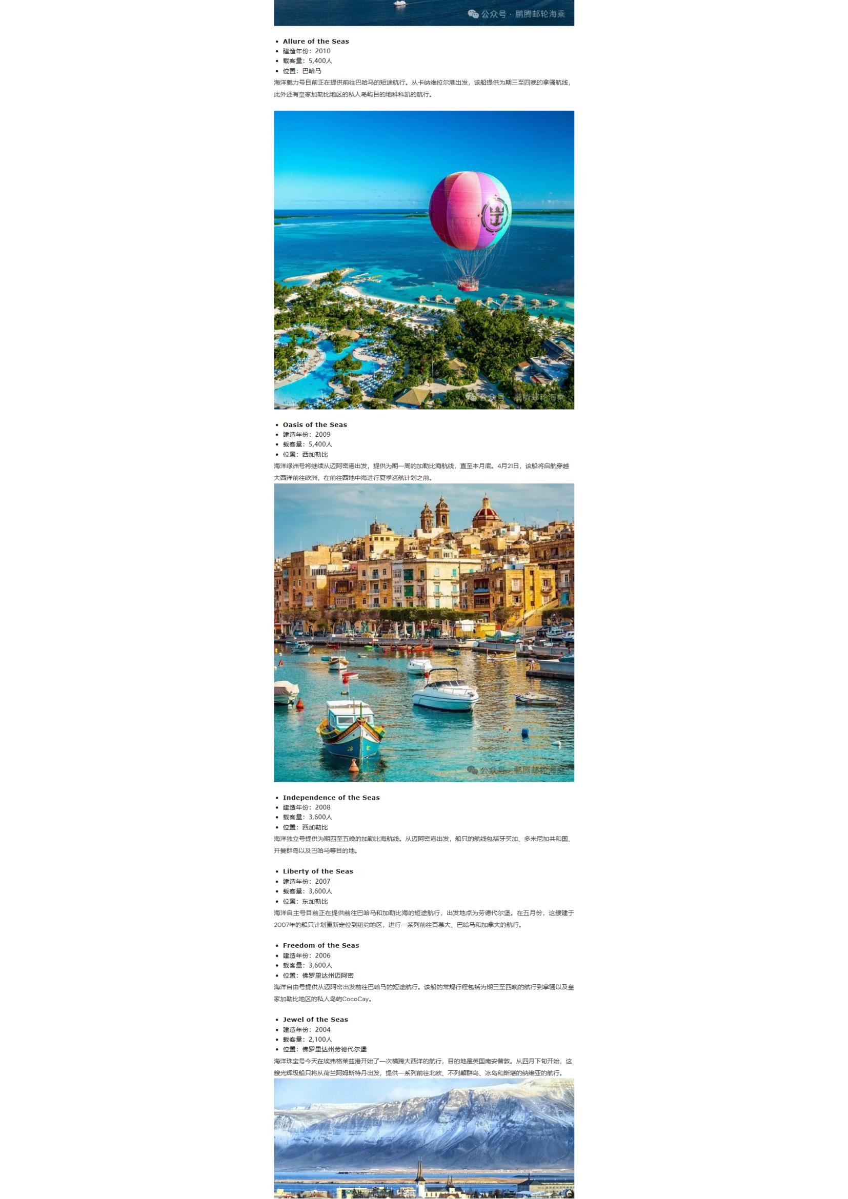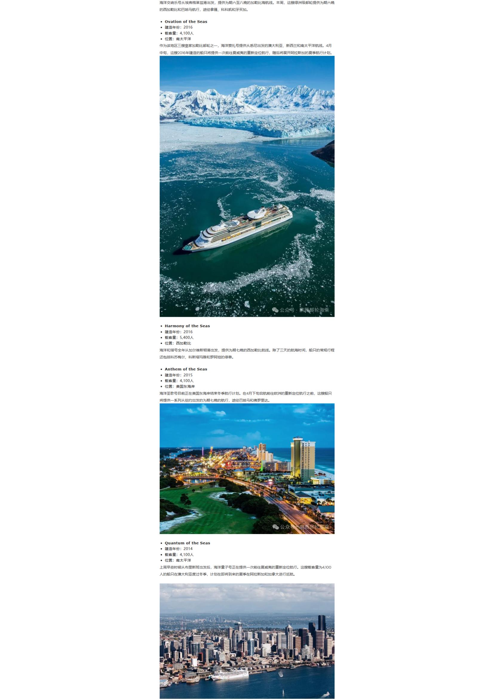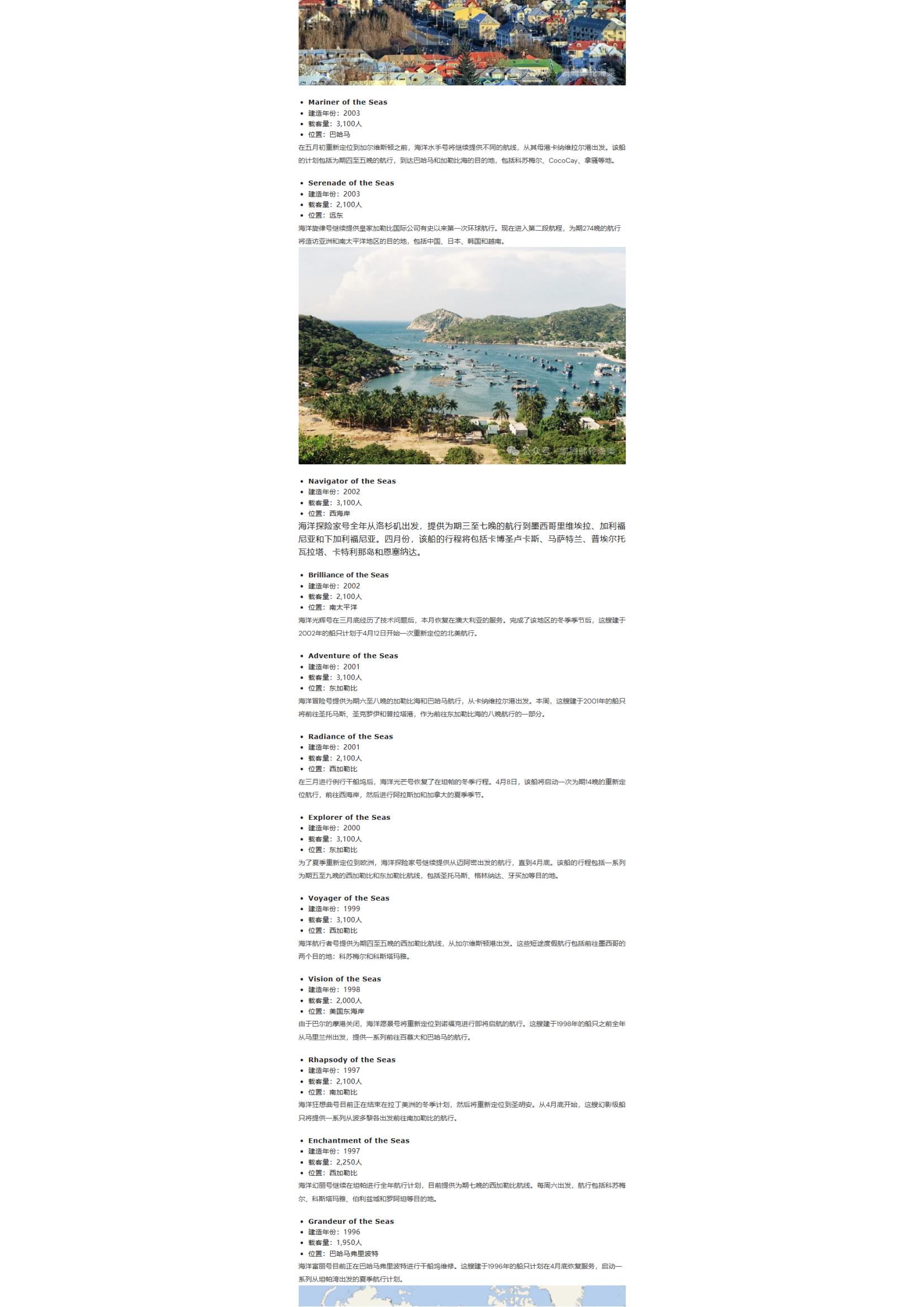 皇家加勒比郵輪4月船隊(duì)位置及航線